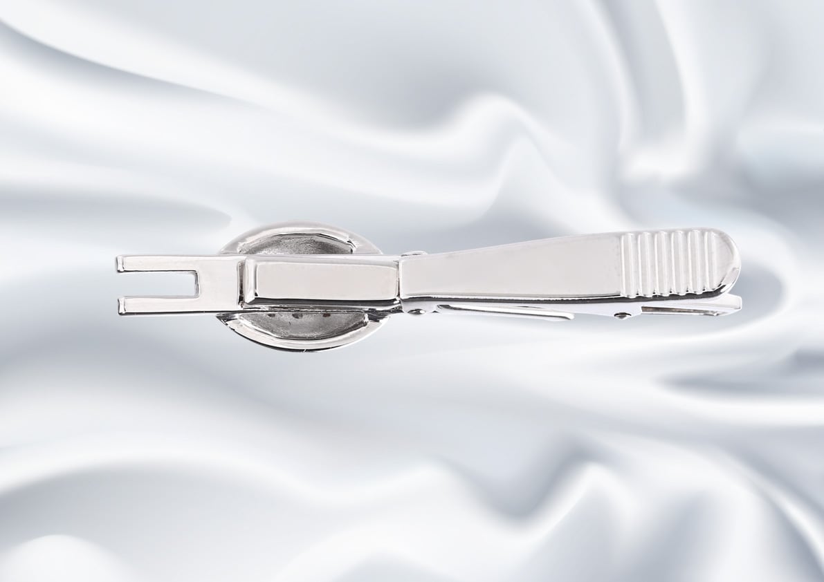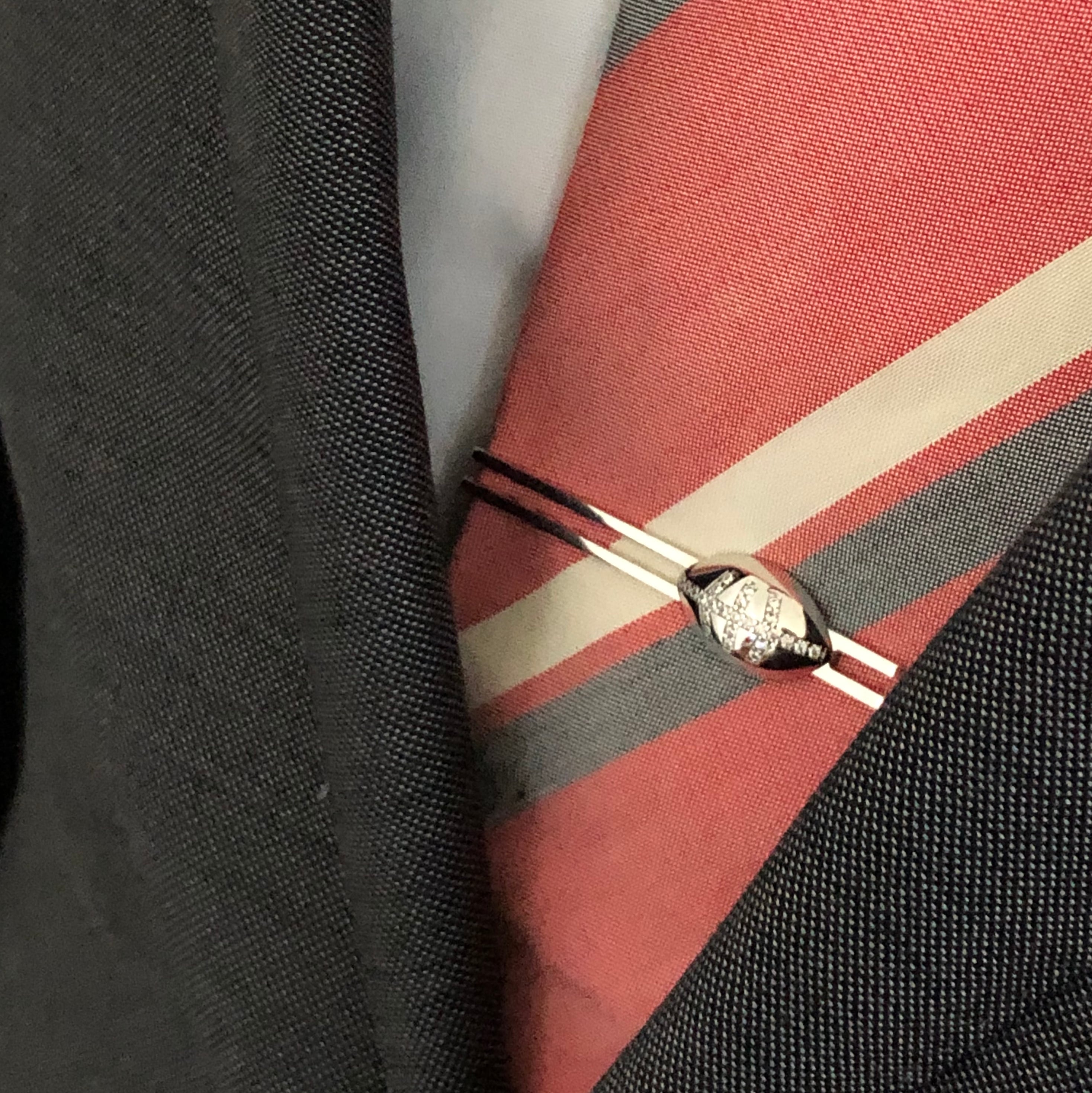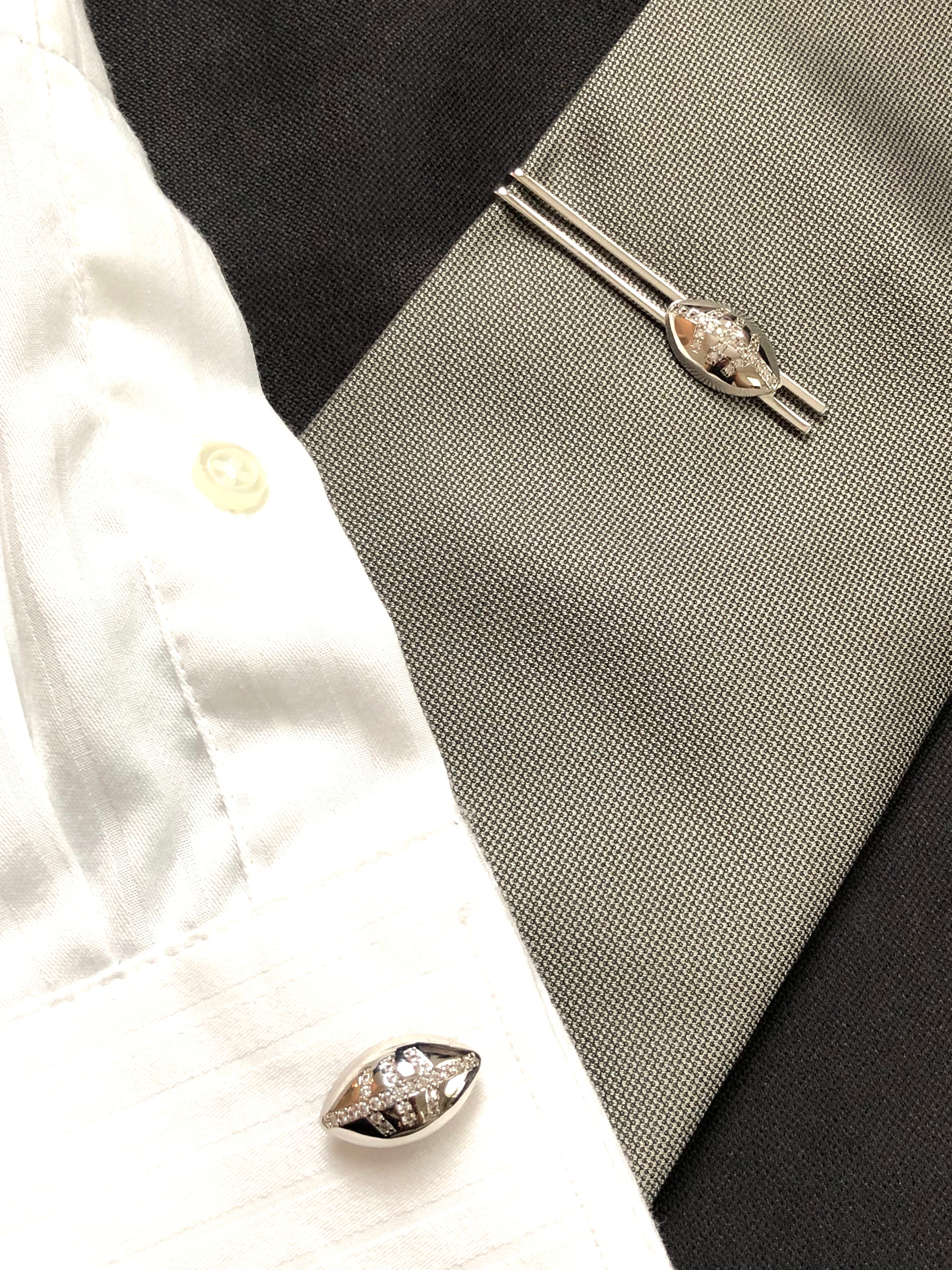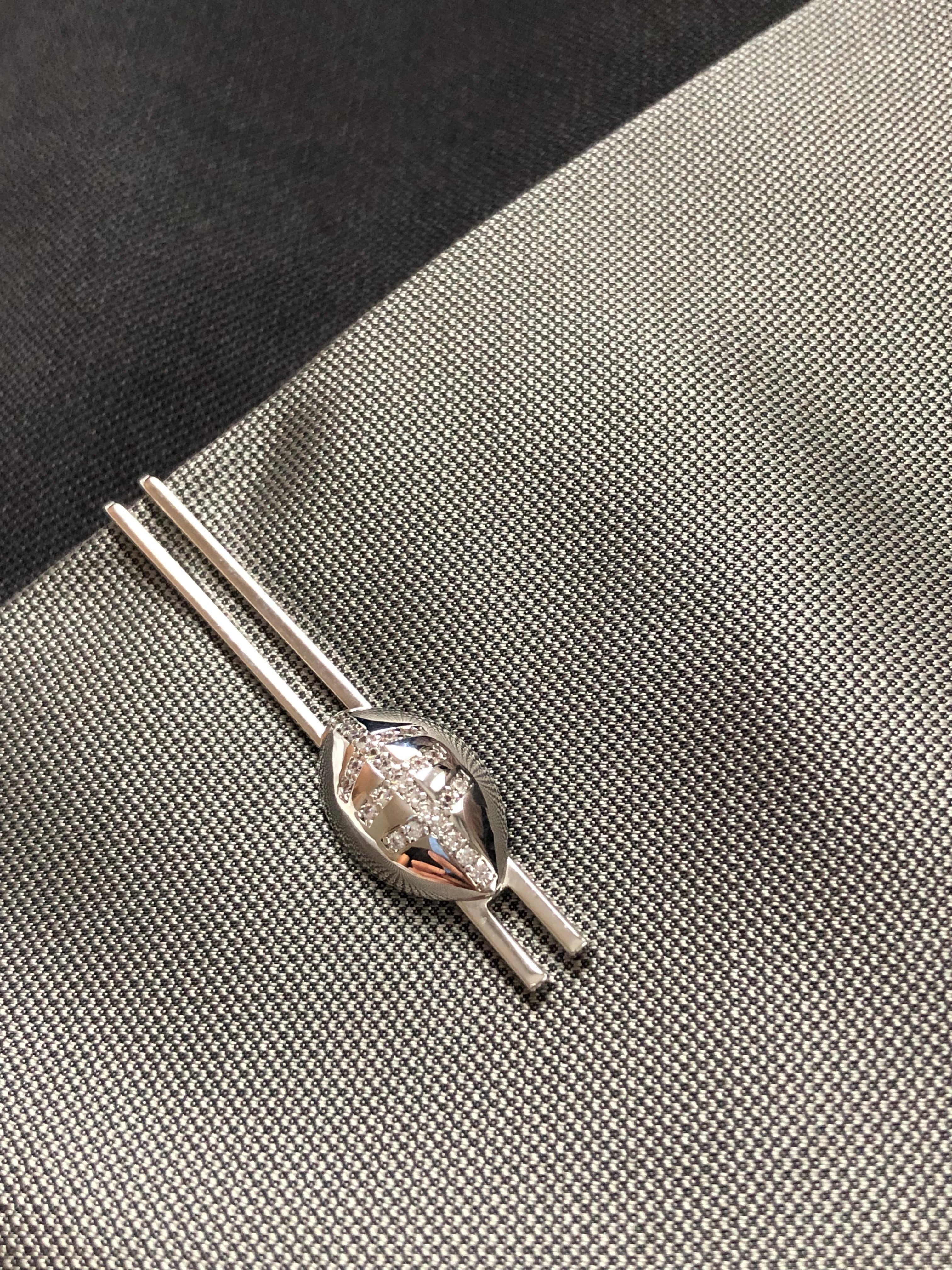 ジルコニアを使用しラグビーボールをイメージしたクリップタイプのタイピンです。