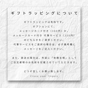 ギフトラッピングご希望の場合はオプションにてご選択ください。(オプションを選択せずに、備考欄に"ラッピング希望"等の記載があった場合には通常ラッピングにてお送りさせていただきます。)